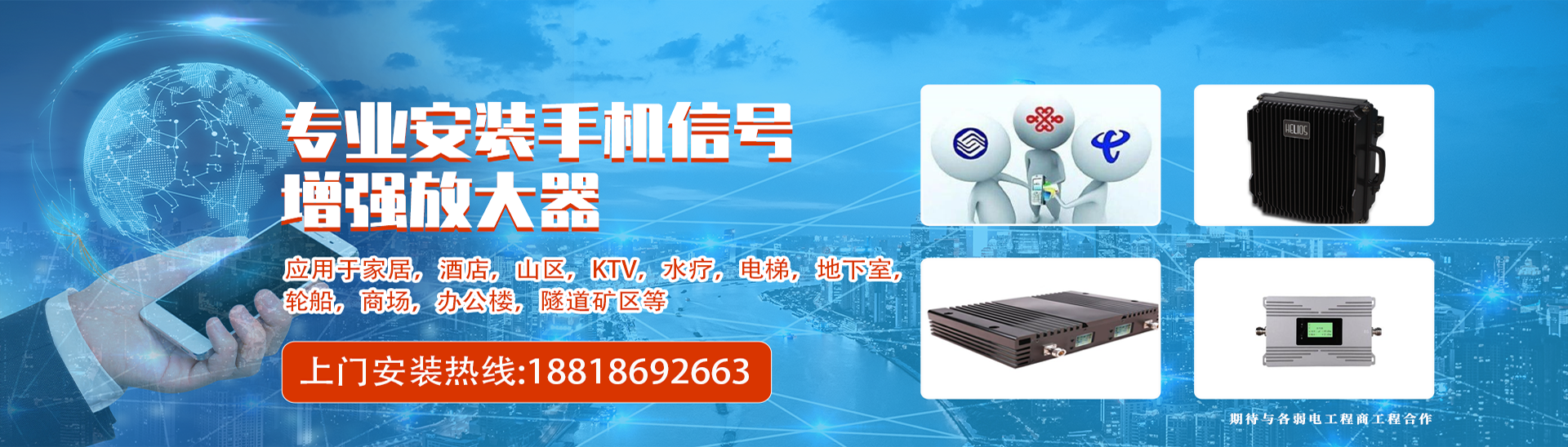 ? ? ? ? 公司擁有一批射頻微波安裝師和設(shè)計(jì)領(lǐng)域的人員、可提供現(xiàn)場(chǎng)勘察、方案設(shè)計(jì)、工程預(yù)算、設(shè)備安裝、開通調(diào)試、網(wǎng)絡(luò)優(yōu)化、設(shè)備售后維護(hù)等一系列技術(shù)服務(wù)。因而造就了本公司的工程各領(lǐng)域優(yōu)勢(shì)。目前公司移動(dòng)通信網(wǎng)絡(luò)覆蓋產(chǎn)品品種齊全、涵蓋了2G、3G、4G、5G。GSM、CDMA、DCS、PCS、WCDMA、FDD-LTE的各種選帶直放站、光纖直放站、數(shù)字選帶直放站、多制式數(shù)字光纖分布系統(tǒng)、特殊場(chǎng)所信號(hào)屏蔽系統(tǒng)等等。
